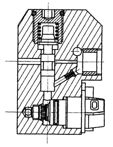 Schématisation hydraulique d\'un injecteur Bosch d\'un système d\'injection Diesel à rampe commune.