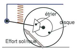 Essieu arrière à bras tiré en phase de motricité.