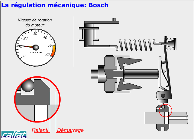 Principe de fonctionnement du régulateur de la pompe mécanique Bosch moteur à l'arrêt.