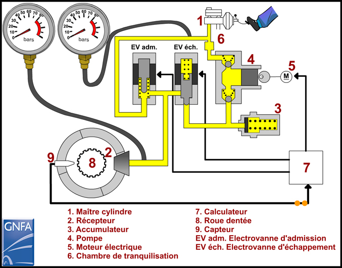 Principe de fonctionnement du système de freinage avec ABS : Position repos.