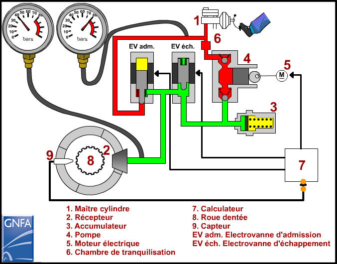 Principe de fonctionnement du système de freinage avec ABS : Position maintien de pression.