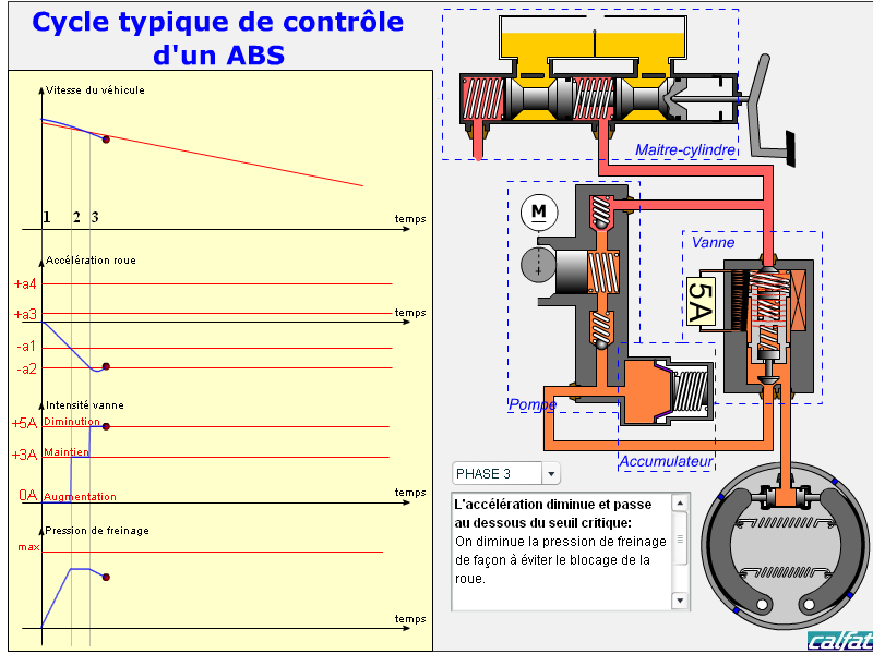 Principe de fonctionnement du système de frainage avec ABS : phase n°1