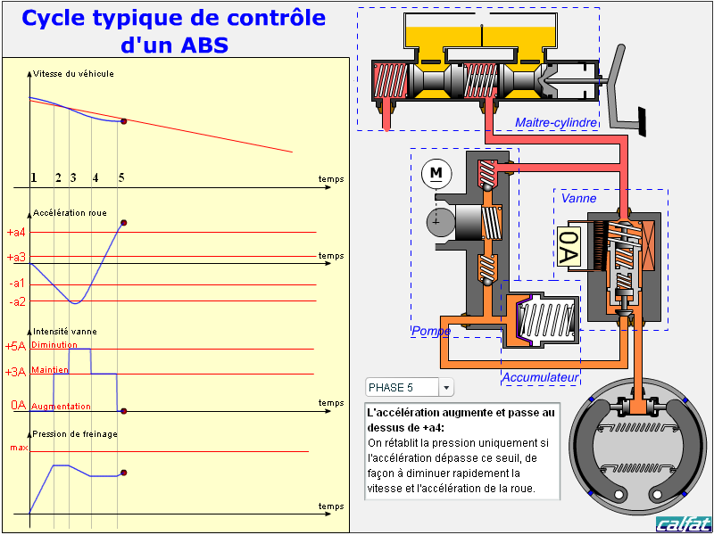 Principe de fonctionnement du système de frainage avec ABS : phase n°5