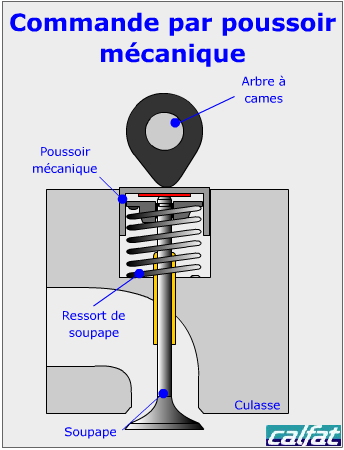 Commande d'ouverture des soupapes par poussoir hydraulique : Soupape en pleine ouverture.