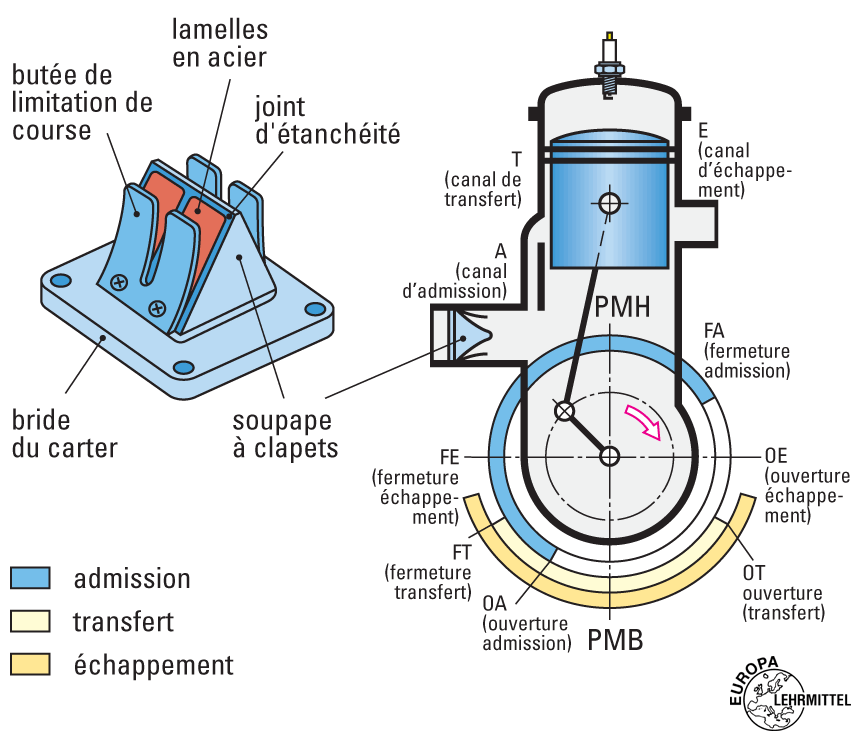 Phases du cycle de fonctionnement du moteur 2 temps.