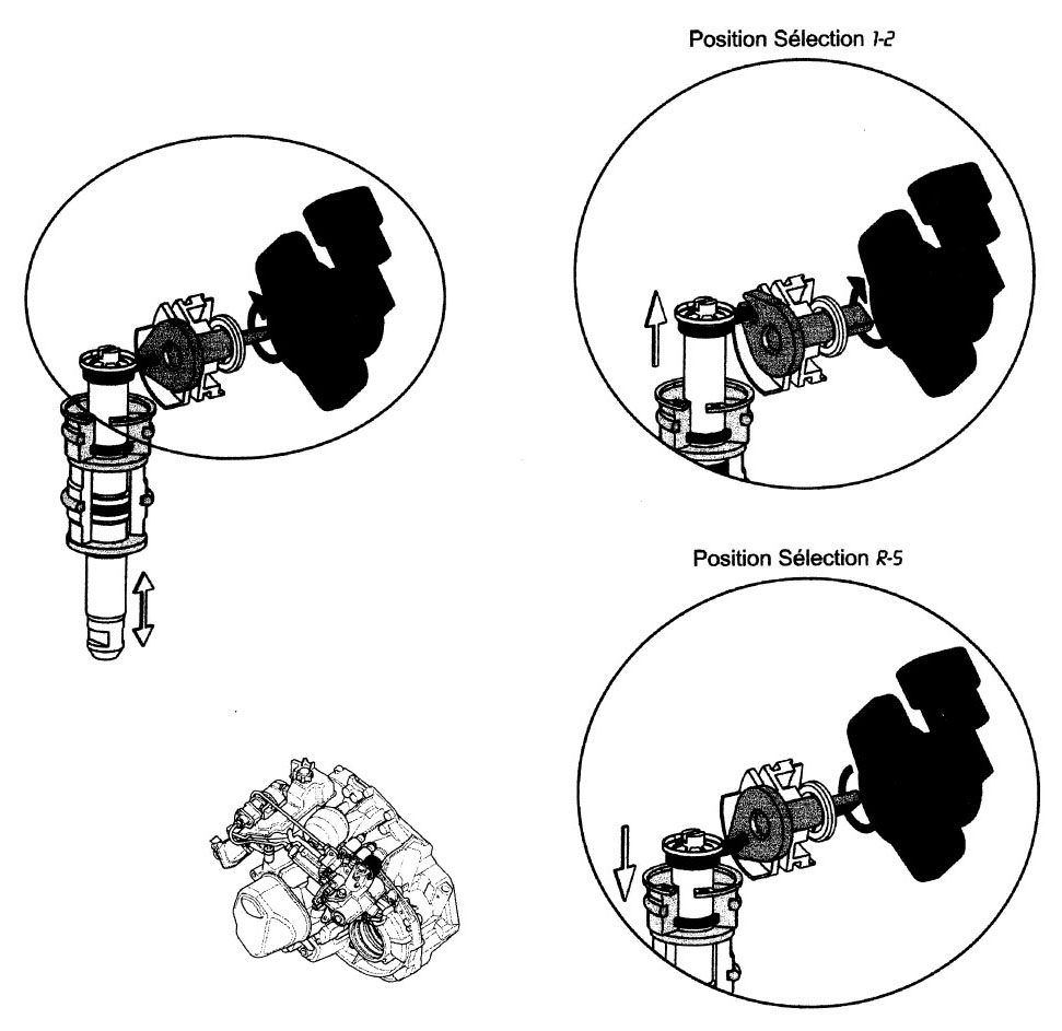 Contacteurs de sélection de vitesses: ici, basculement vers la droite en position N.