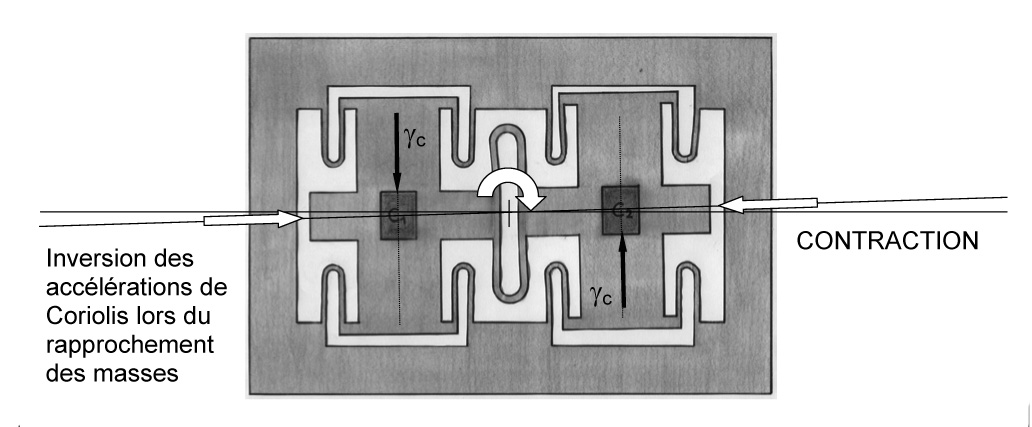 schéma du système oscillant du capteur à lacet Bosch: déformation du cylindre en vibration .