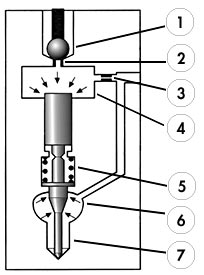 Principe de fonctionnement de l'électro injecteur en position ouvert.