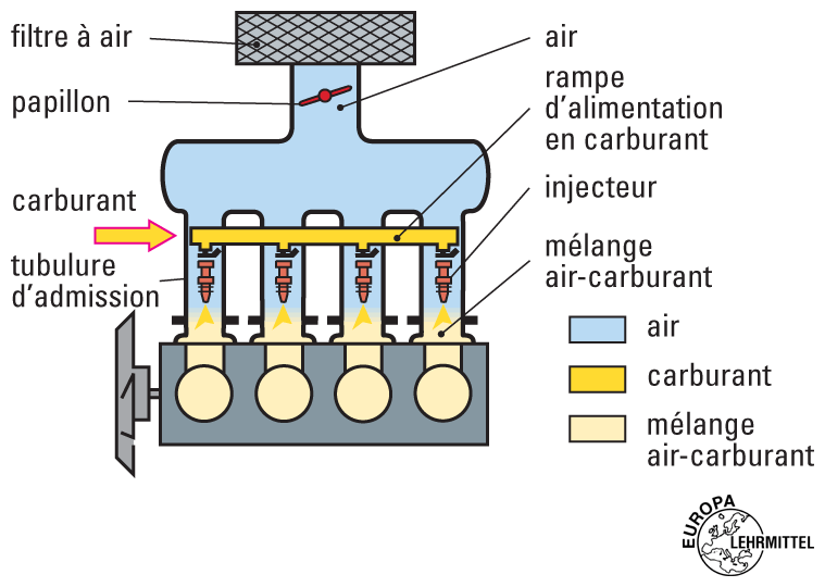 Vue en coupe d'un moteur Diésel injection indirecte à préchambre.