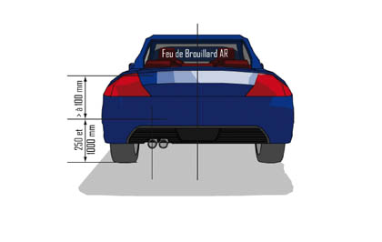 Schéma montrant la position normalisée du feu de brouillard AR sur un véhicule.