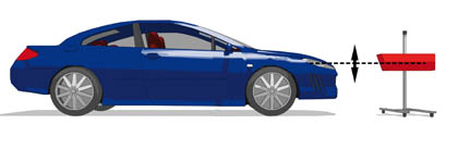 Positionnement d\'un appareil de réglage des projecteurs par rapport à l\'automobile.