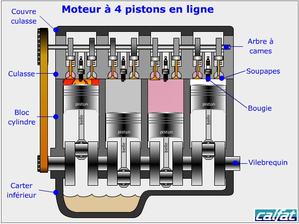 Ordre de fonctionnement d'un moteur 4 cylindres (cylindre 2 en combustion).