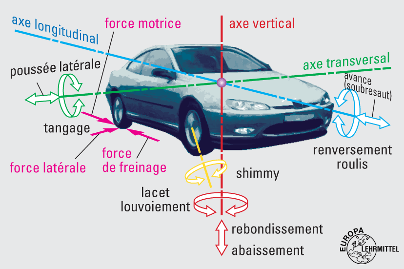 Dénomination des axes,des forces subies par un véhicule.