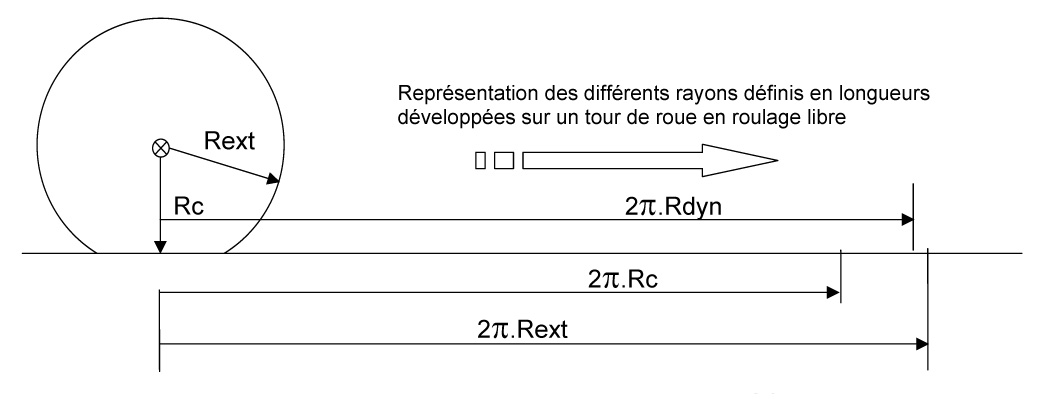 Définition du rayon sous charge et du rayon extérieur pour un pneumatique.