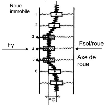 Répartition des vitesses dans l\'aire de contact pneu/sol.