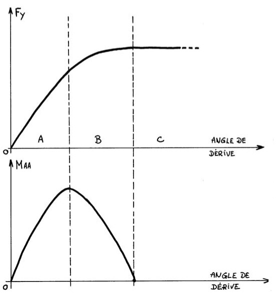 Evolution des efforts tangentiels à la roue en fonction du glissement de la roue par rapport au sol.