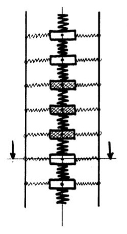 Schématisation du pneumatique: représentation des pains de gomme et des liaisons entre les pains de gomme et la jante.