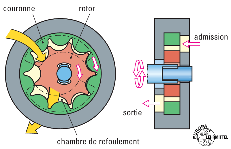 Pompe volumétrique à engrenage interieur.
