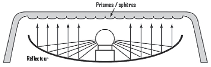 Schéma d\'un projecteur de signalisation en flux réfléchi.