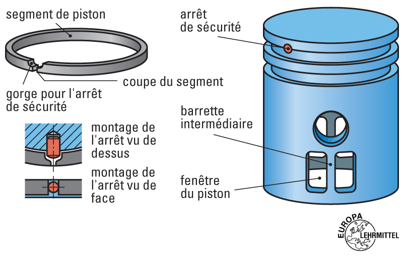 Eléments constitutifs d'un moteur à combustion interne, à piston, 4 temps.