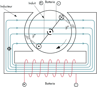 Schématisation d'induit et d'inducteur d'un moteur électrique.
