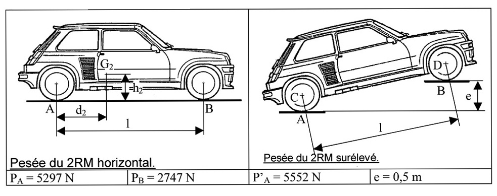 Schéma positionnant le centre de gravité d\'un véhicule sur sol plat.