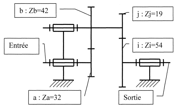 Chaine cinématique minimale d\'un rapport de boite de vitesses.