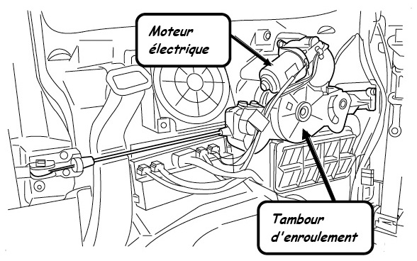 Eléments d\'un mécanisme de portes coulissantes motorisées.