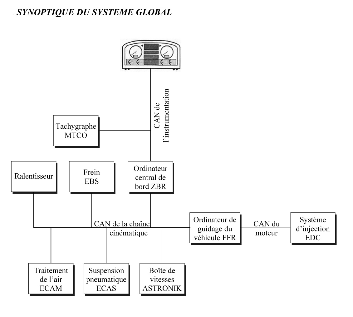 Schéma montrant un exemple de disposition d\'ECU sur un réseau CAN.