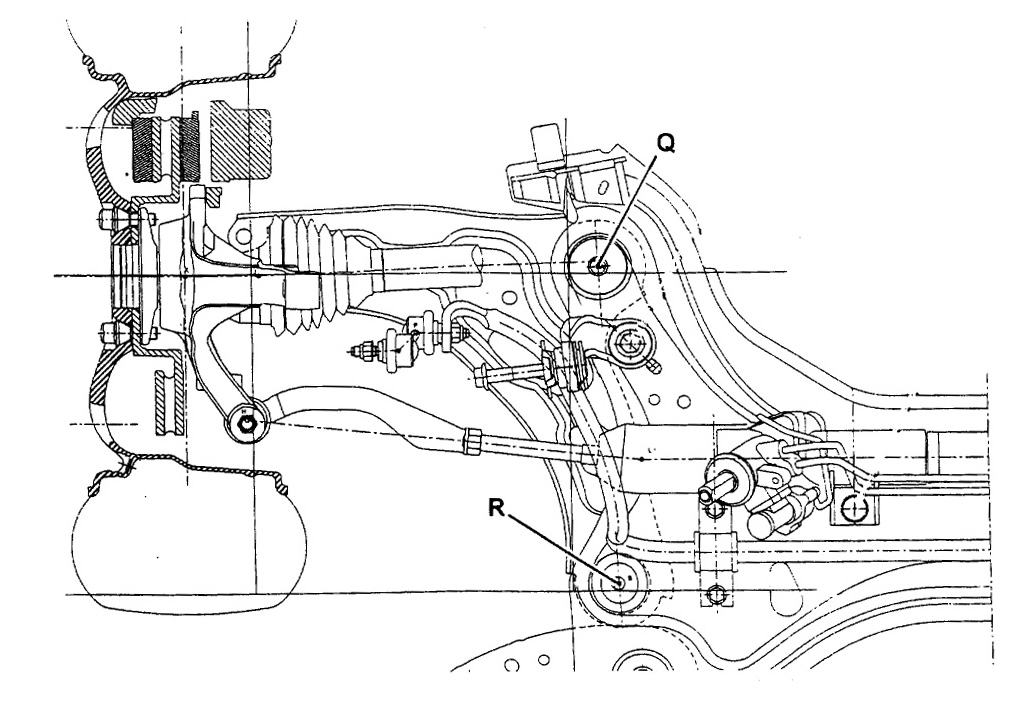 Demi train avant gauche de véhicule vue de dessous.