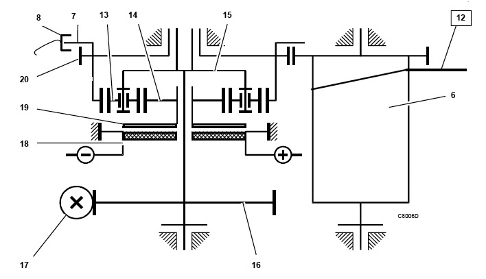 Schéma cinématique d\'un mécanisme de porte coulissante motorisée d\'un véhicule.
